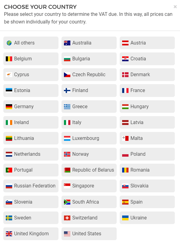 Your country & VAT Selection#
