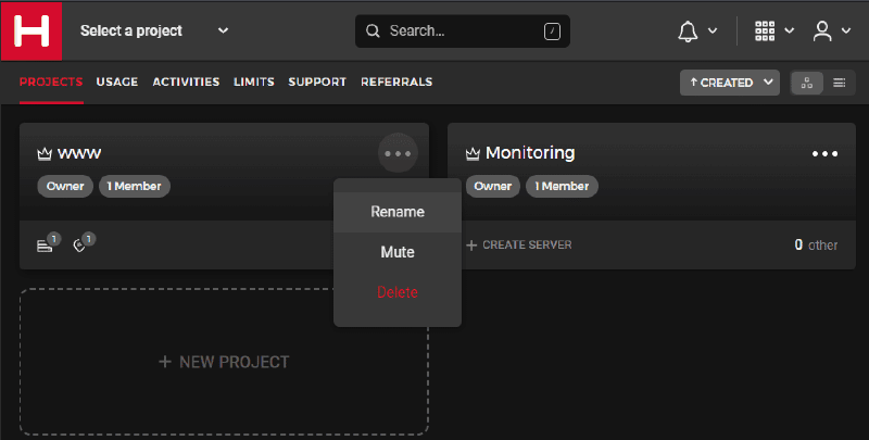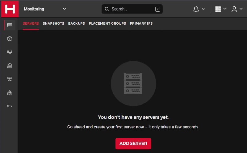To add a new server, you need to click on your project first. Here is an example of my Monitoring Project opened
