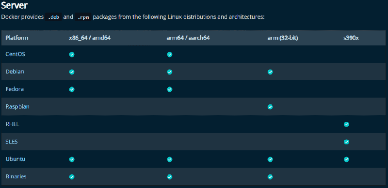 In my case I plan to install Docker Engine, so I need to check the Docker documentation -»HERE «-