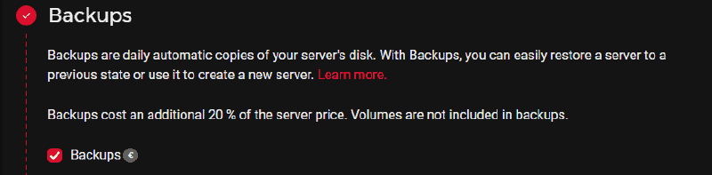 I suggest you select Backups, so you could restore your projects within minutes in case of any issues. It will cost you only 20% of the server price.