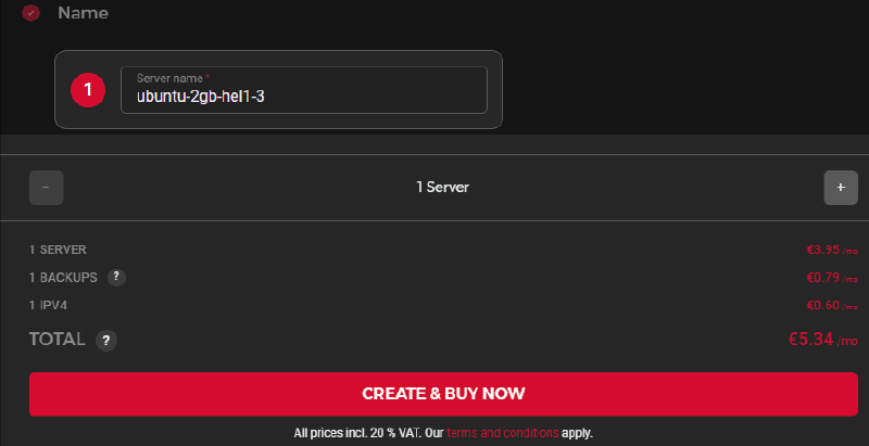 Pick your server name and hit CREATE & BUY NOW (Note that prices might change)
